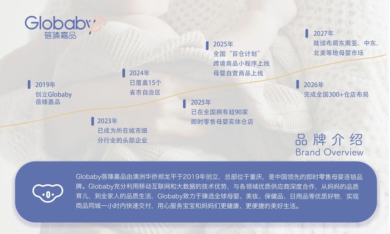 背景:Globaby蓓臻嘉品是蕴含着跨国情缘的品牌,于2019年在中国重庆诞生,其澳大利亚总部坐落于美丽的悉尼。Globaby这个名字,既传达了全球连锁的意义,又蕴含着对宝宝们的呵护与关爱。